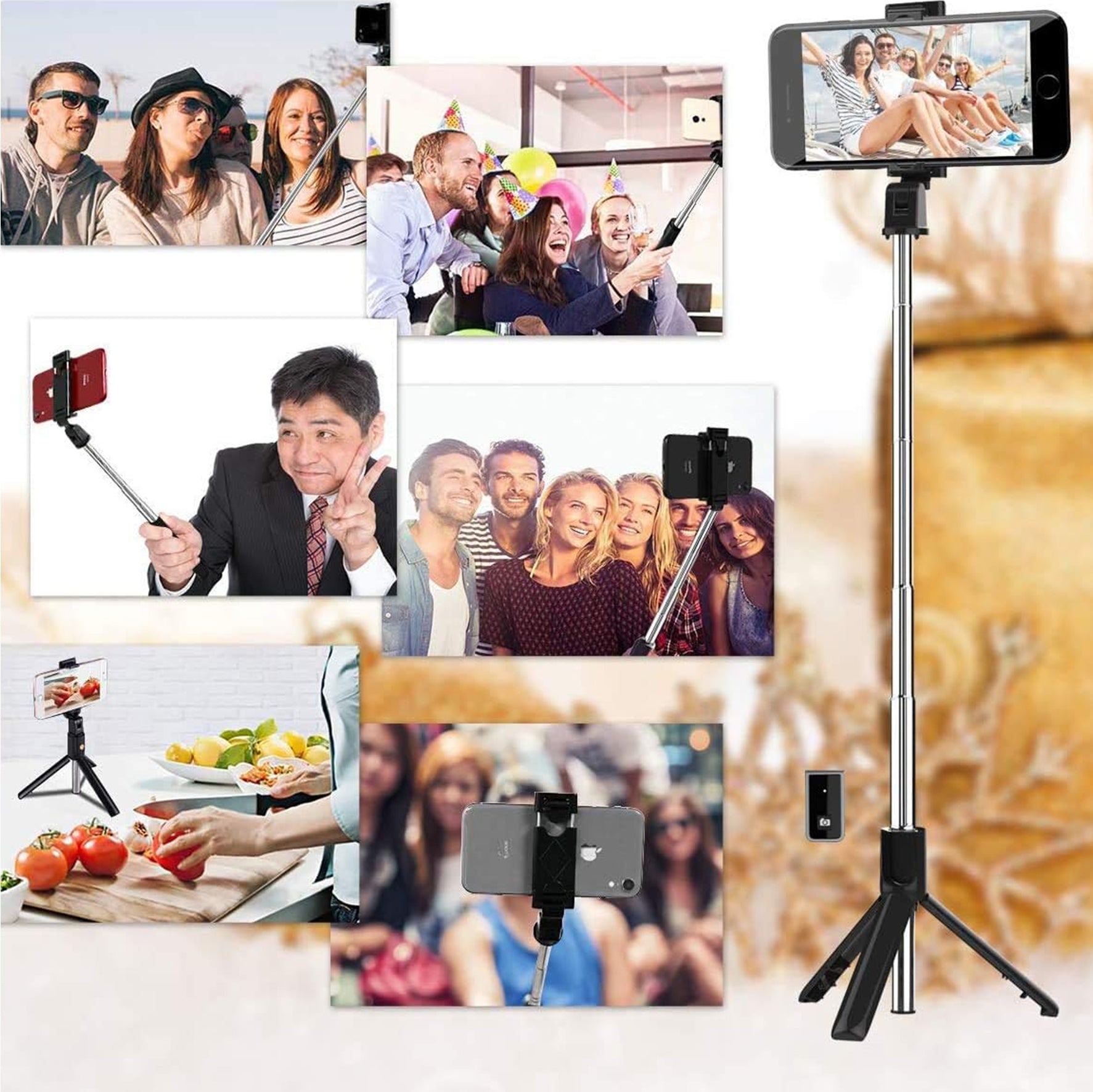 • 【130cm Quadruped Selfie Stick Tripod】ARIZONE upgraded phone tripod with 3-point support. You can place a large and heavy phone without worrying about dropping it.