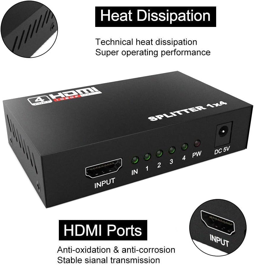 ARIZONE 4K HDMI Splitter 1 In 4 Out, 1x4 Ports Box Supports Full Ultra HD 1080P and 3D Compatible with PC STB Xbox PS4 PS3 Fire Stick
