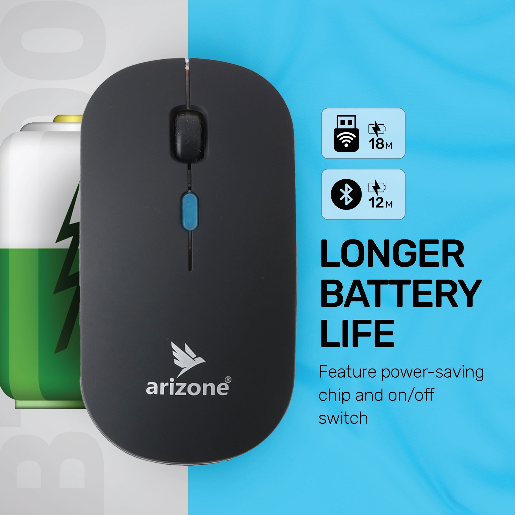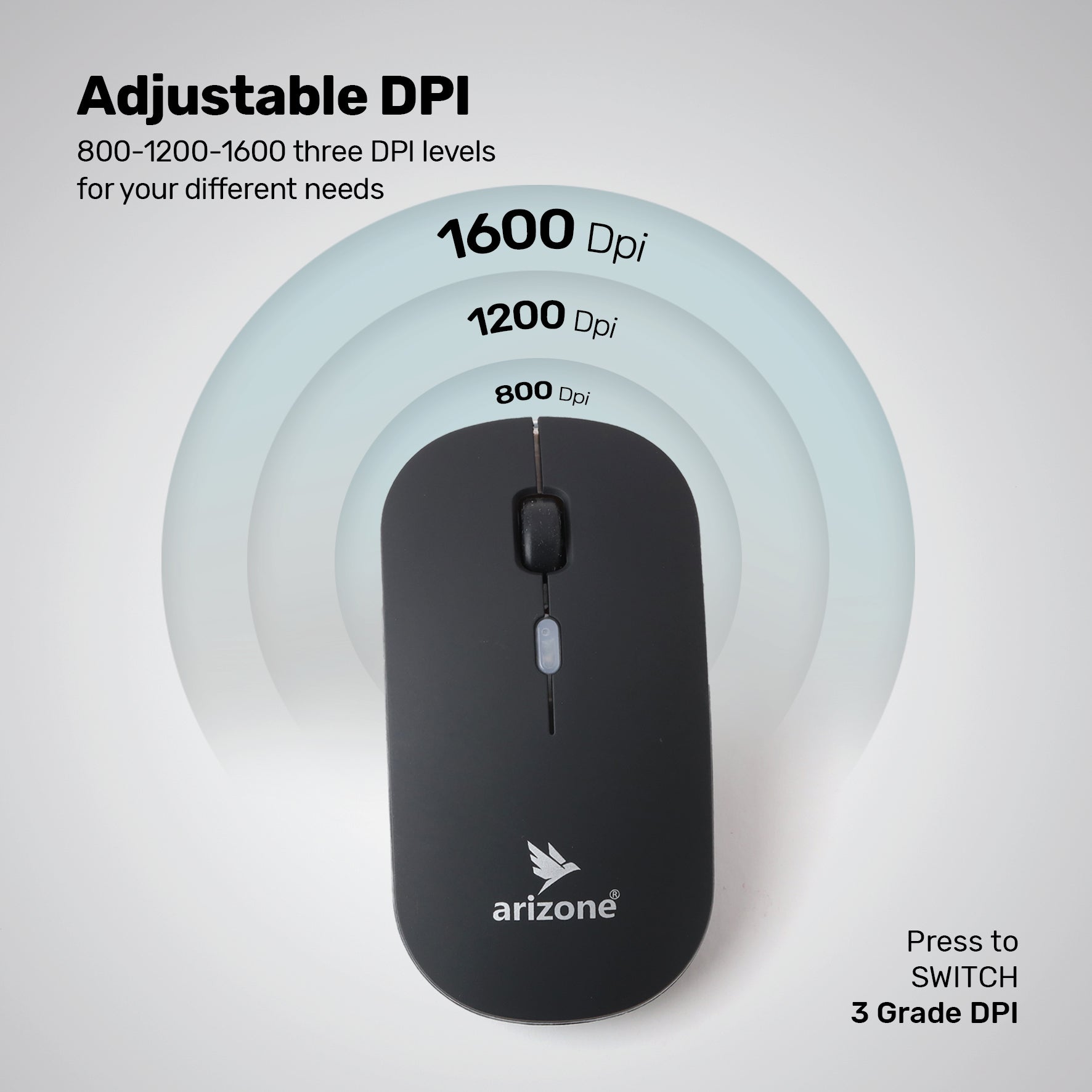 ARIZONE BT8000 Wireless Mouse for PC, Mac, Laptop, 2.4 GHz with USB Mini Receiver + Bluetooth Dual Mode, Optical Tracking Black