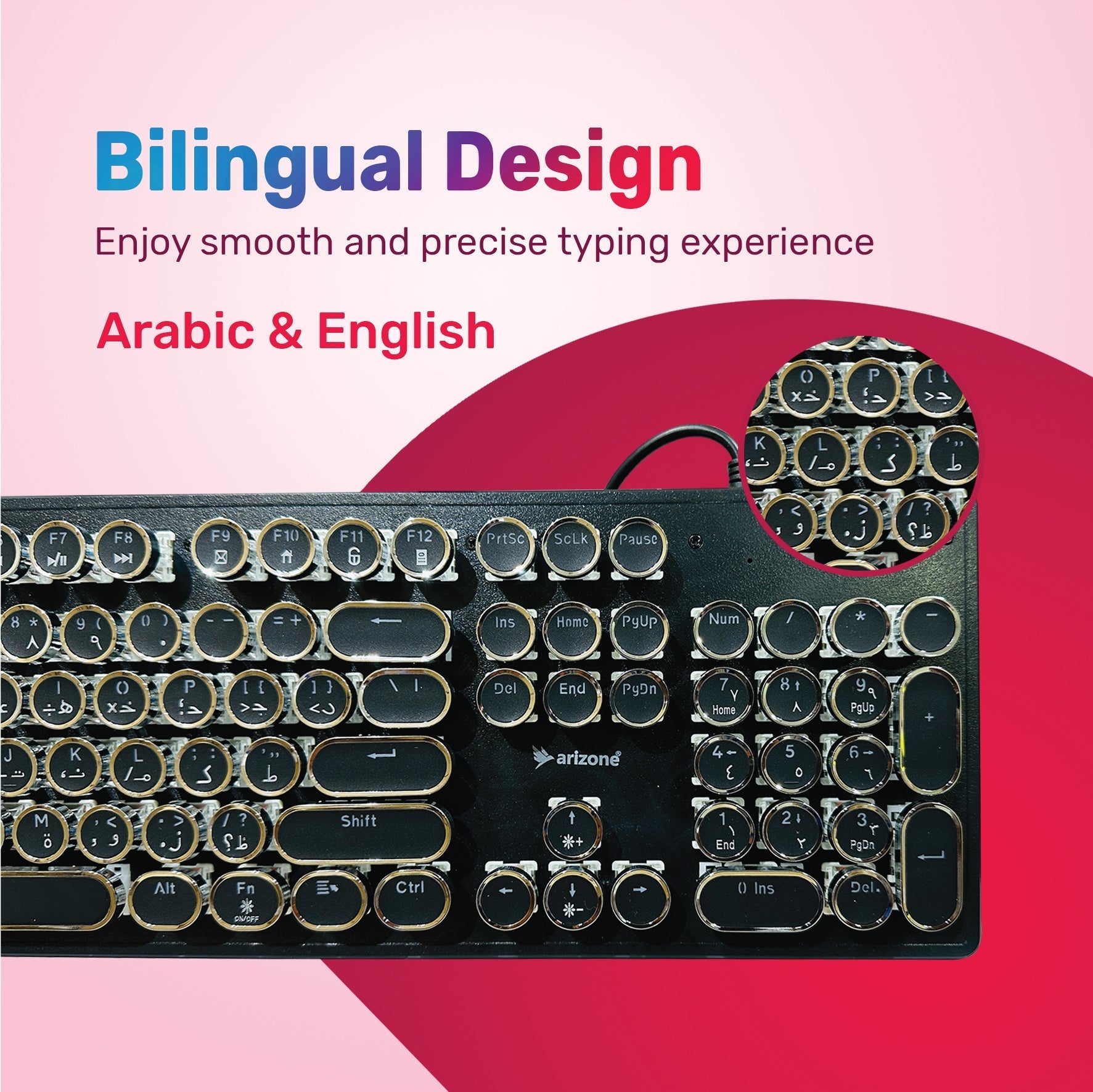 ARIZONE MK 20 Typewriter Style Retro Mechanical Gaming Keyboard Wired with True RGB Backlit, English and Arabic Keyboard