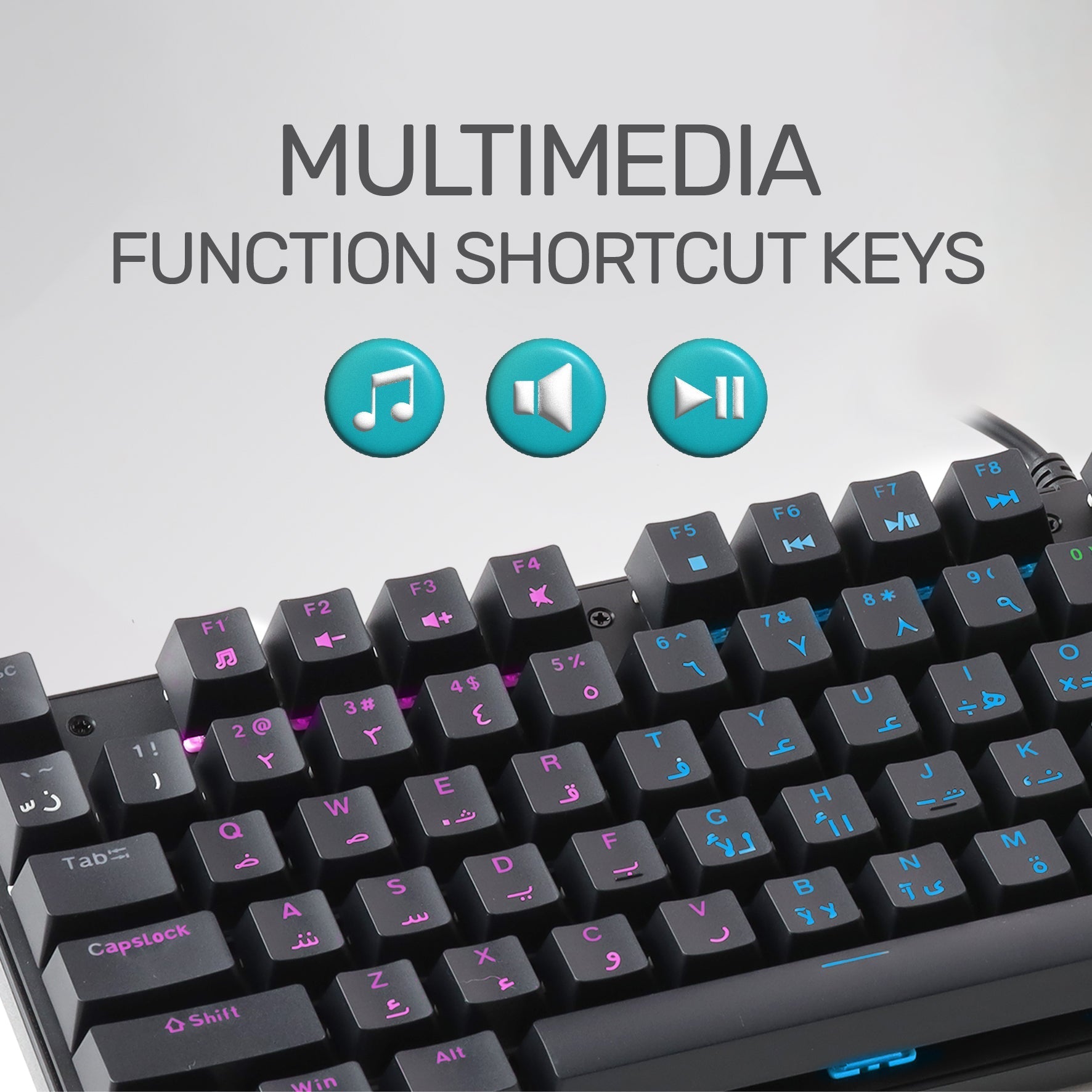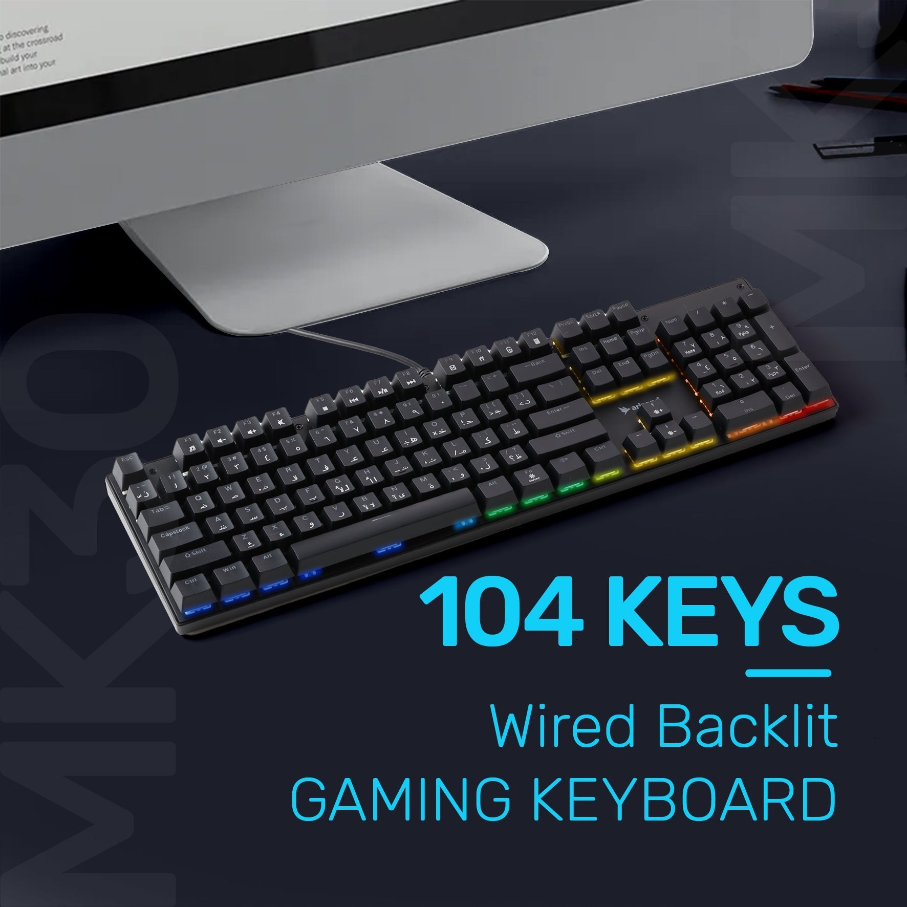 ARIZONE MK 30 Wired Mechanical Keyboard, USB Plug and Play, Full Size, Spill Resistant, English and Arabic Layout, Black