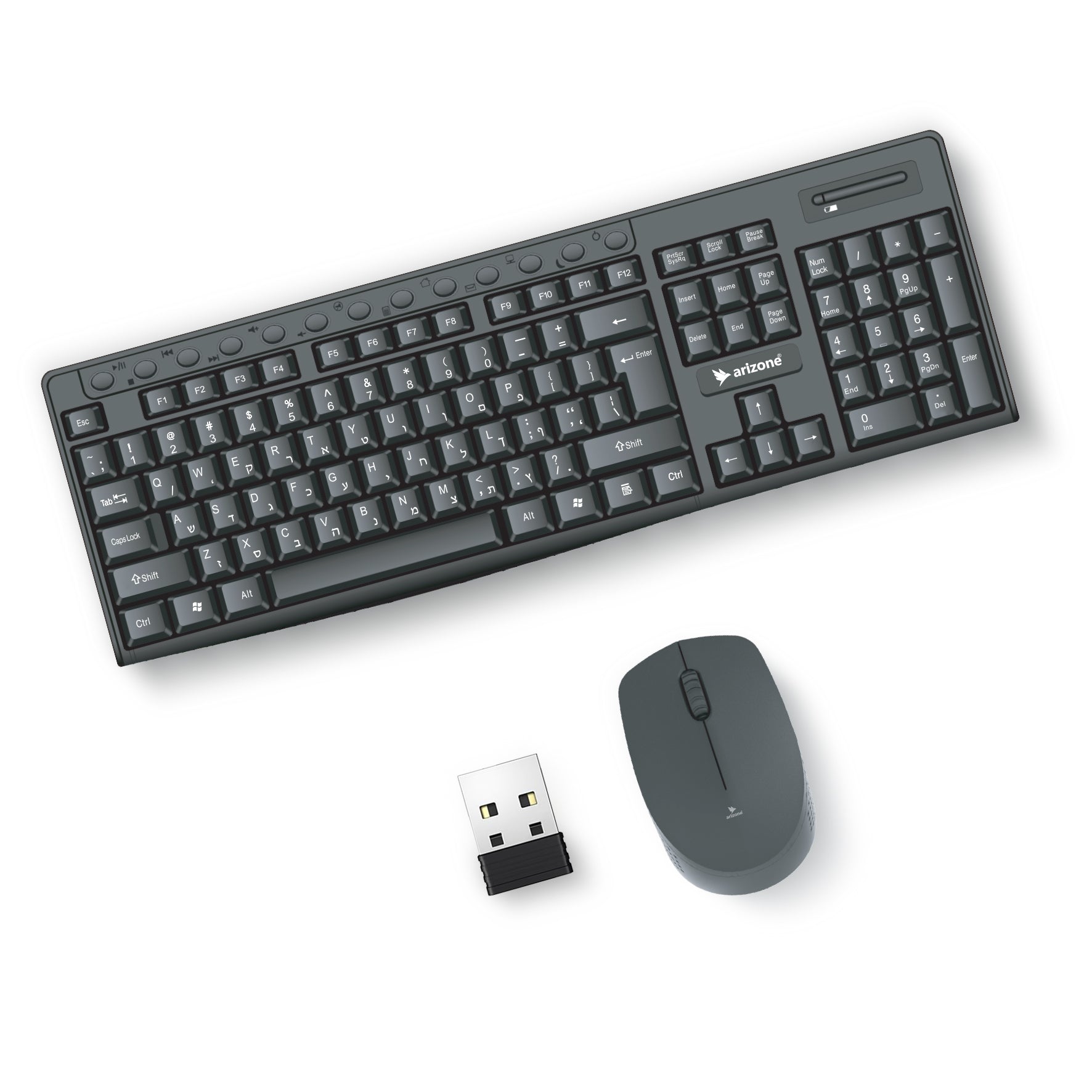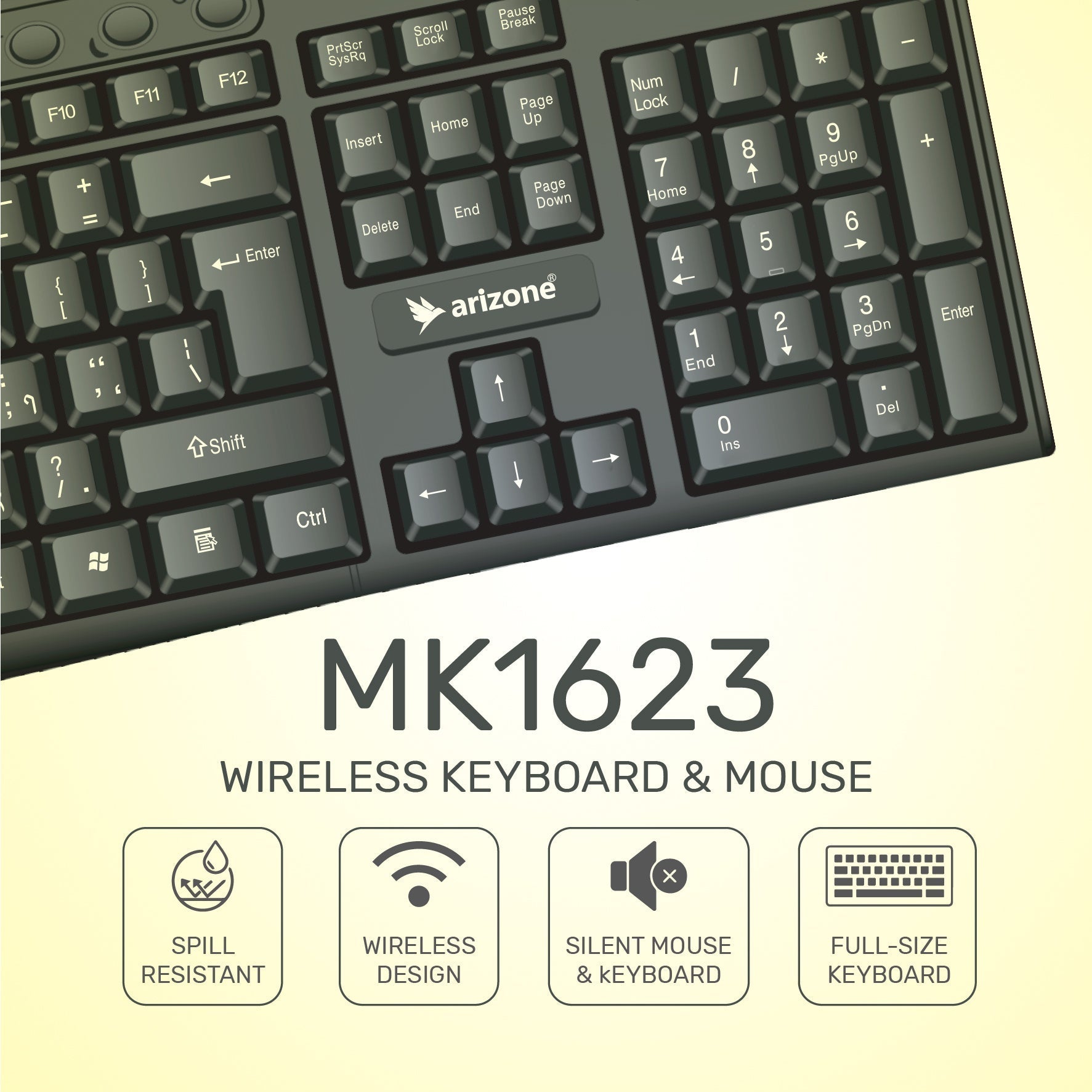 ARIZONE MK1623 Wireless Arabic/English Keyboard And Mouse Combo For Windows, 2.4 Ghz Wireless, Compact Wireless Mouse, Multimedia And Shortcut Keys, Pc/Laptop