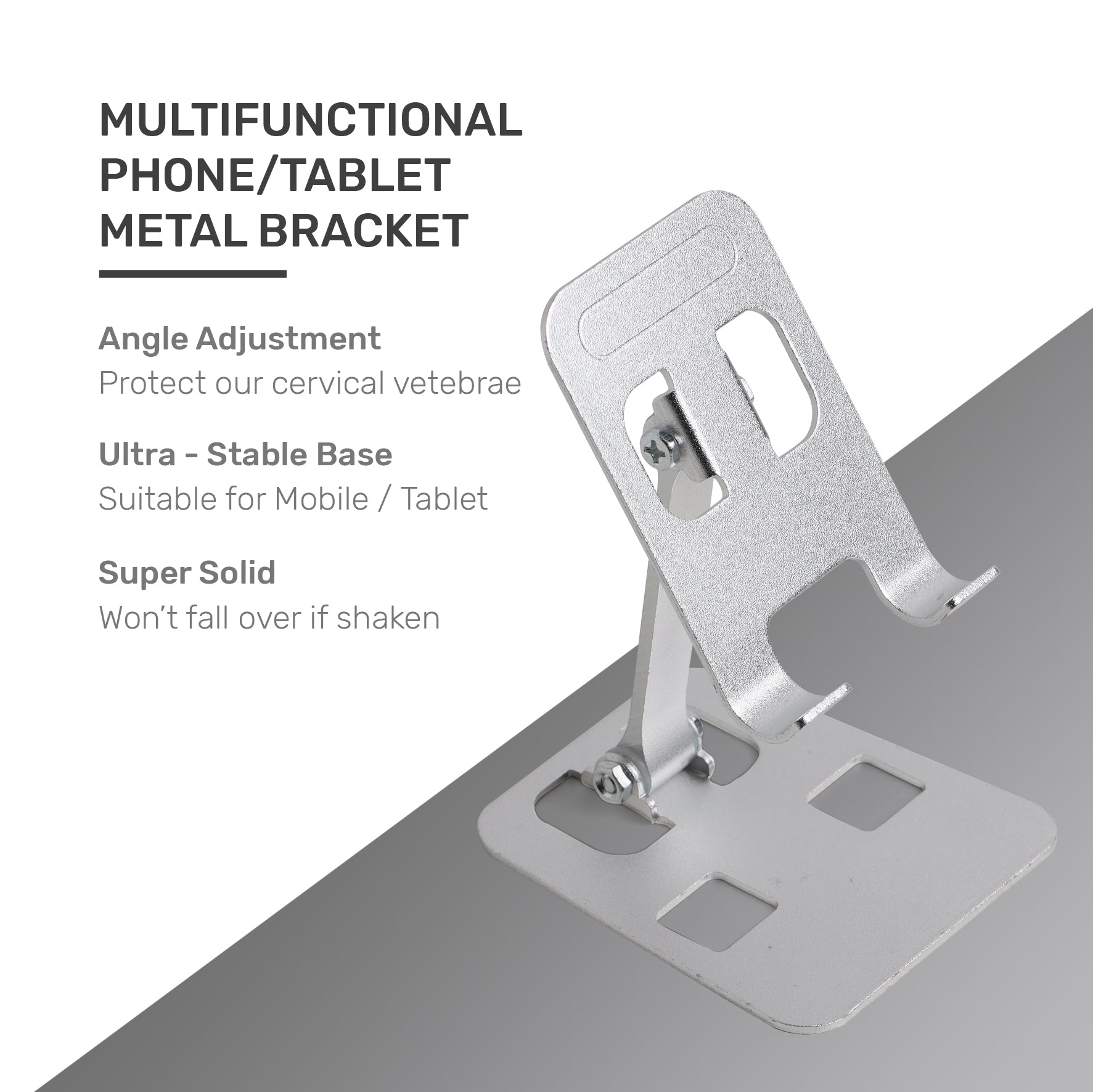 • 【Perfect View】Angle adjustment, height lifting design. This phone holder not only can adjust the angle of the bracket by 90 degrees but also can adjust the angle of the support rod by 90 degrees.