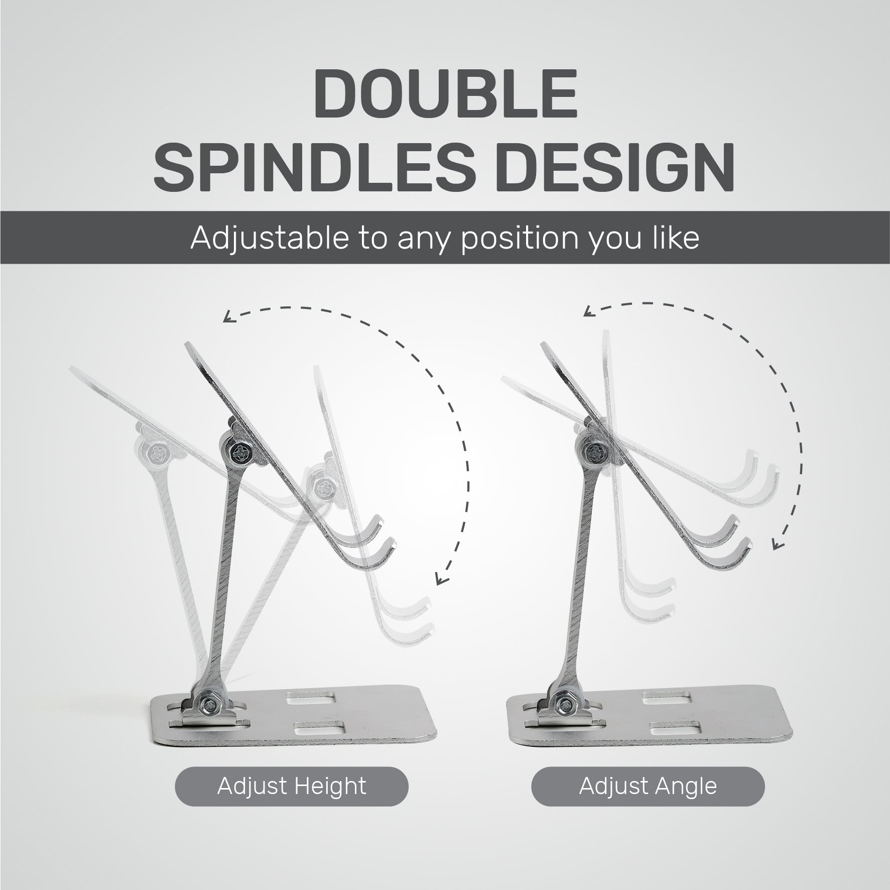 ARIZONE Phone Stand, Height Adjustable Phone Holder, Aluminum Foldable iPhone Stand for Desk, Stable Mobile Stand Holder Compatible with Most Phones (Silver)
