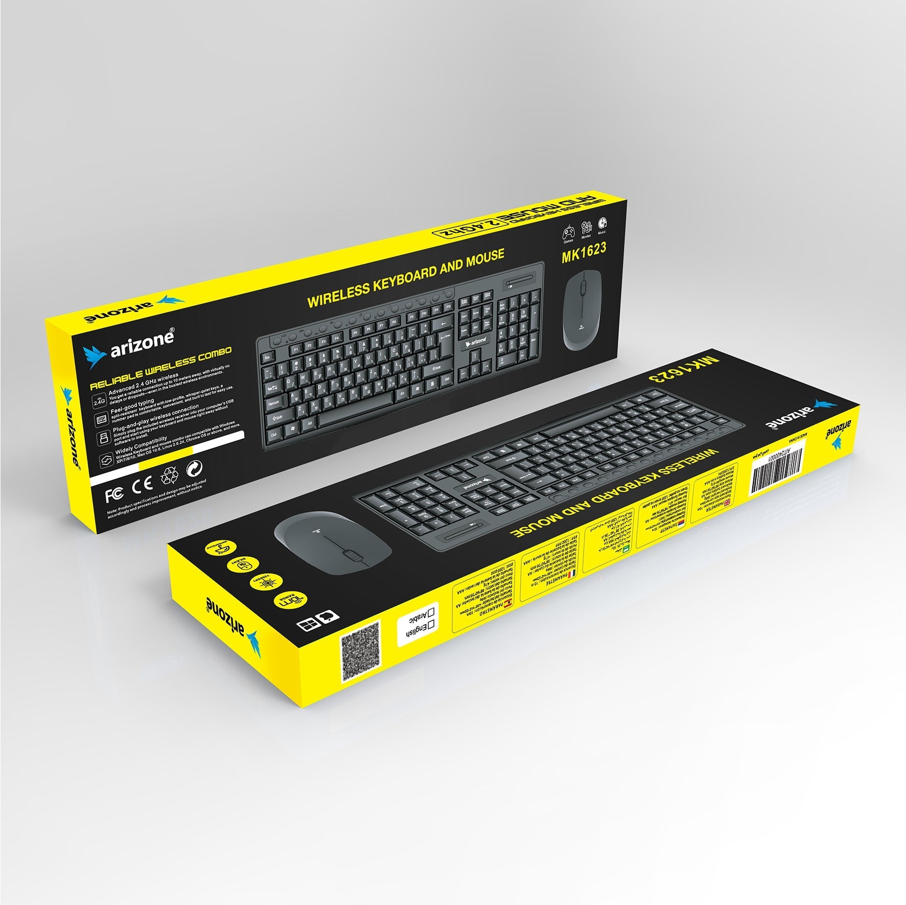 ARIZONE Wireless Keyboard and Mouse Combo, Premium USB-C 2.4Ghz Cordless Multimedia Keyboard and 6 Button Optical Dpi Mice with Dual Interface Nano Receiver, English and Arabic Keys