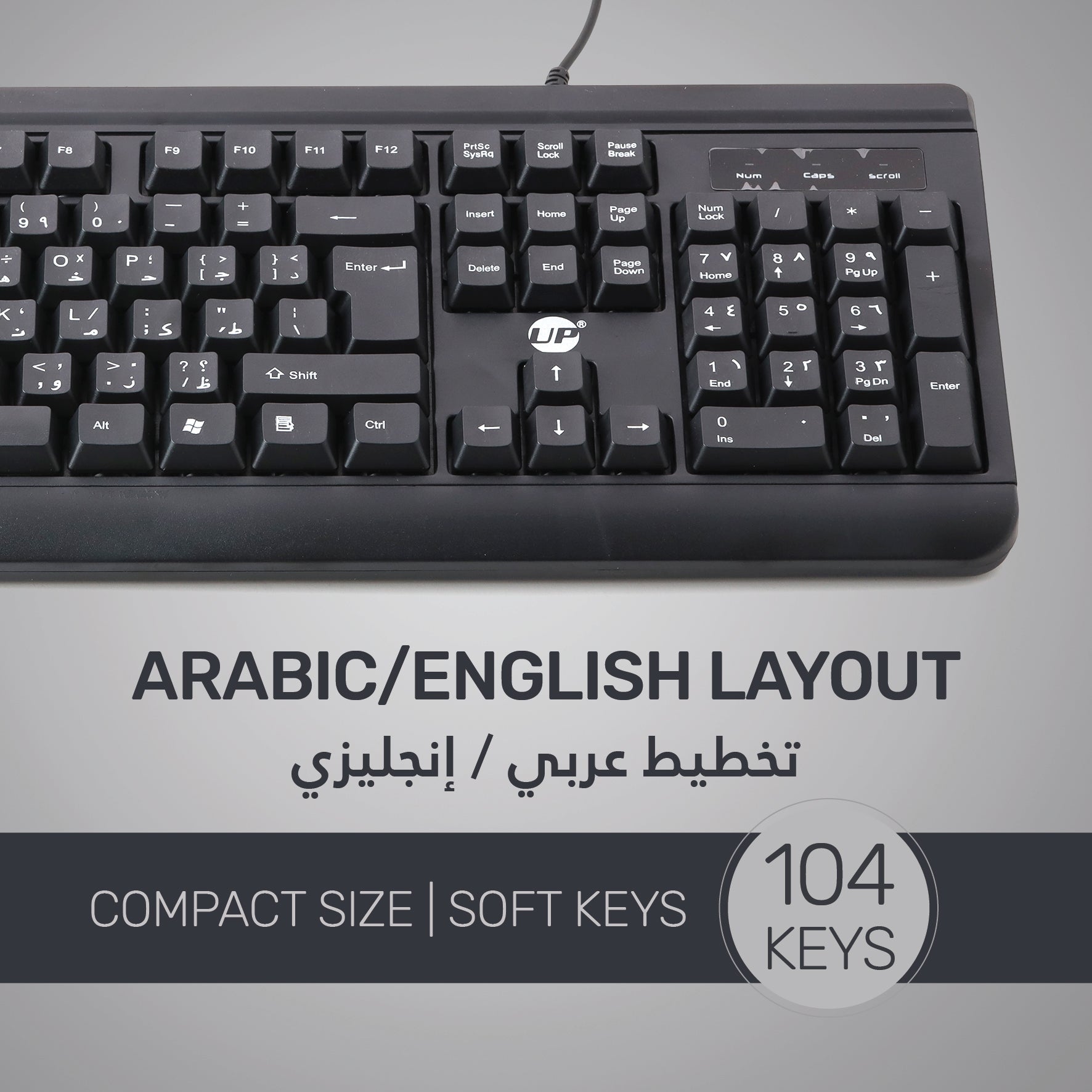 UP Wired Keyboard with Full Range of 104 Keys, USB Plug and Play, Arabic&English Layout Black For PC/Laptop