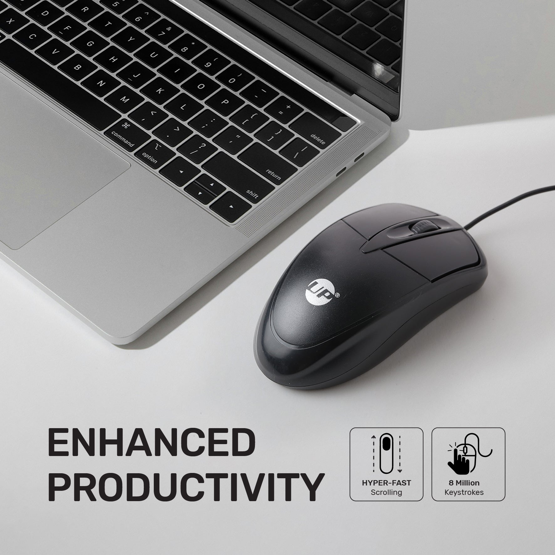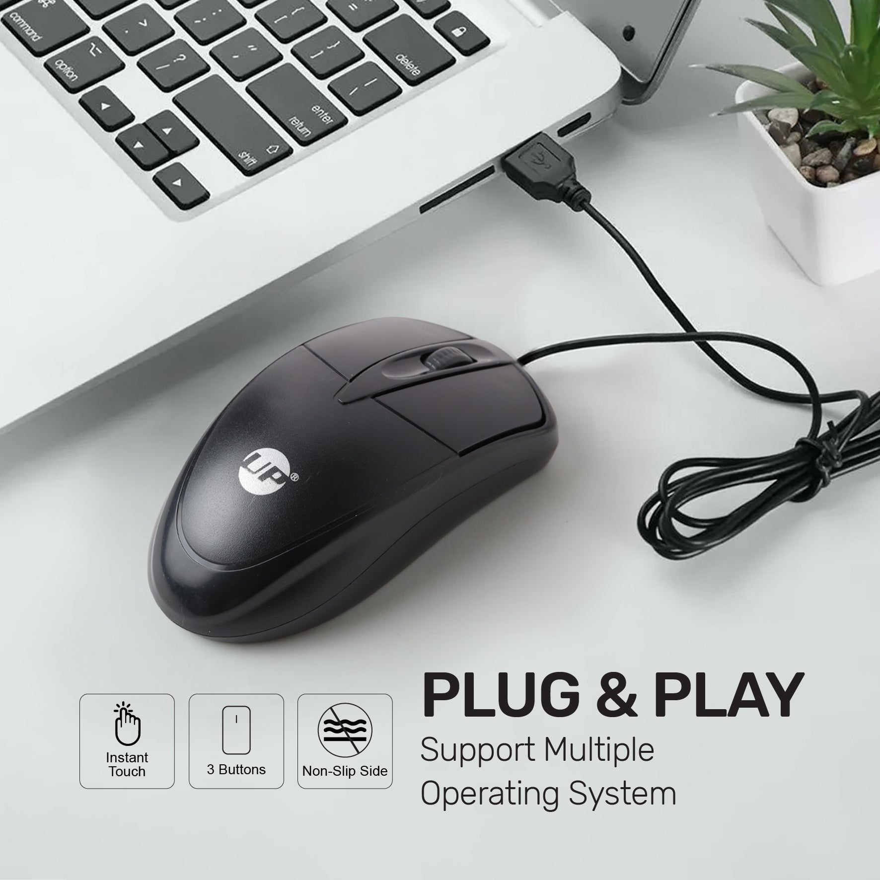 UP Wired Mouse, USB Wired Computer Mouse with Ergonomic Design, 1200 DPI 1.5m Length Cable Optical Corded Mouse for Laptop, PC, Desktop - Black